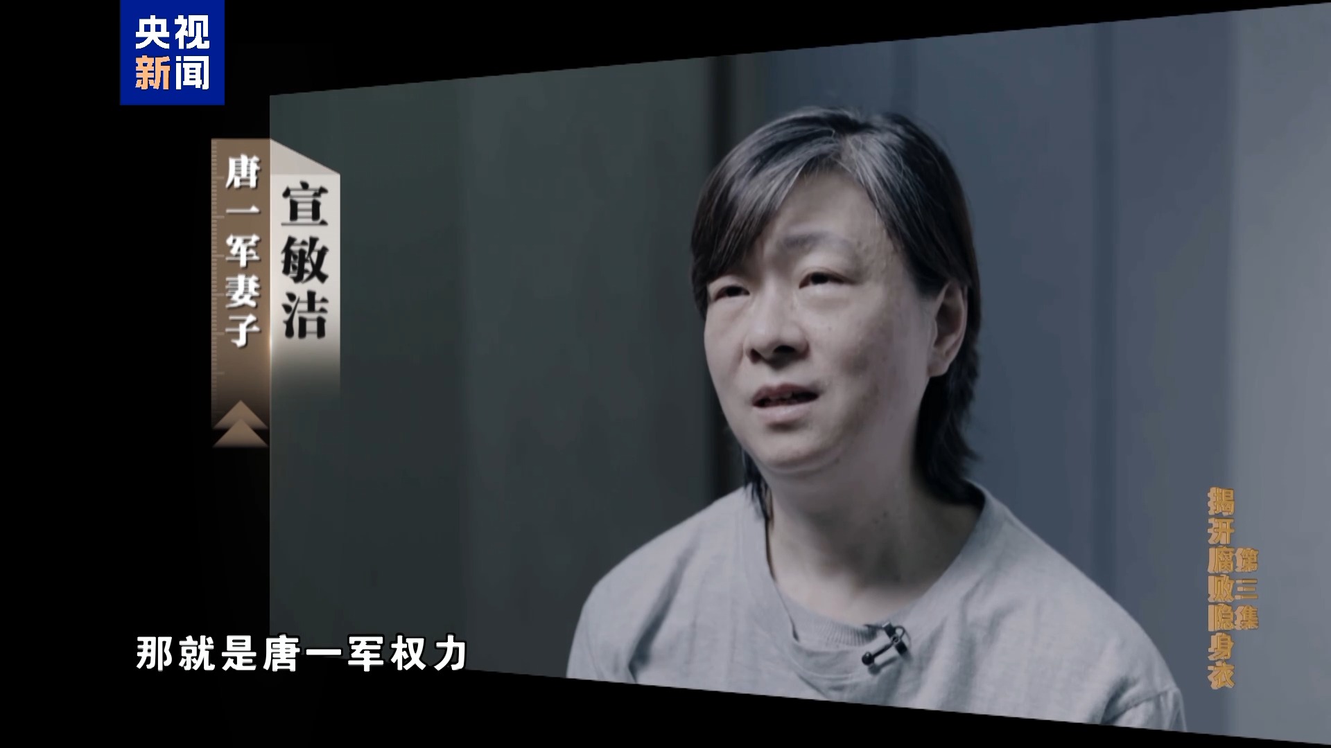 *唐一軍妻子 宣敏潔:*我沒有把我的企業經營管理經驗用在正途上,把這些東西都用在掩蓋了背後這種權錢交易的這種本質的東西,導致我們整個家庭有今天這樣一個結局,血的教訓,所以我現在也是萬分地悔恨。