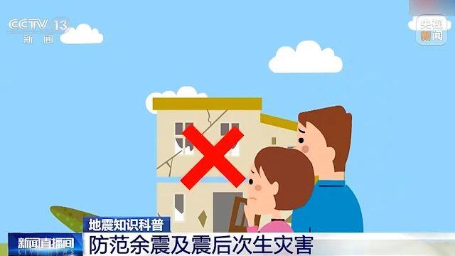 主震後餘震持續不斷,在專業部門尚未對房屋進行安全鑑定之前,即使自家房屋尚未倒塌,震後也不要貿然進入或居住。