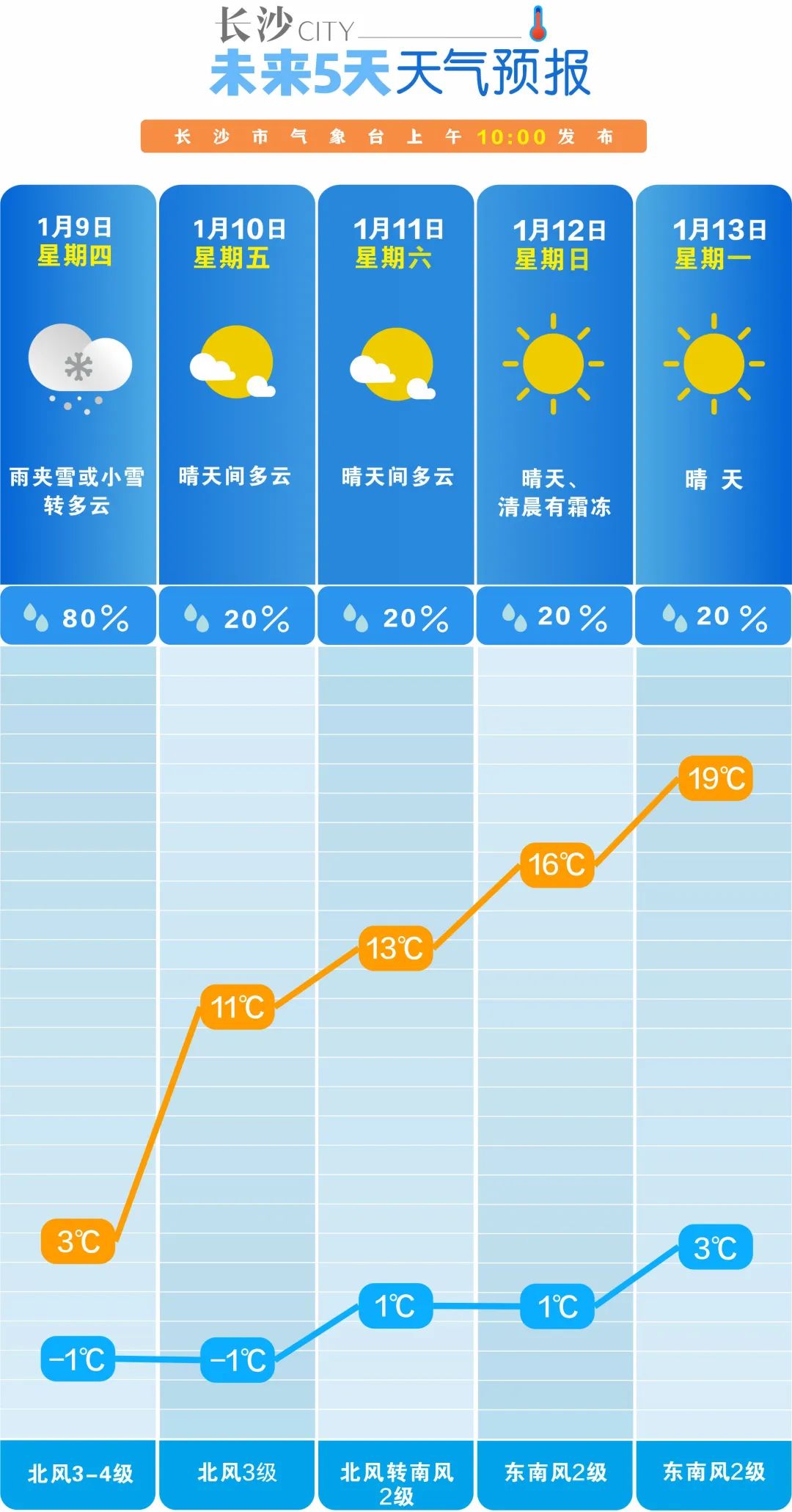 長沙“火箭式”升温!明日飄雪,13日氣温直逼20℃