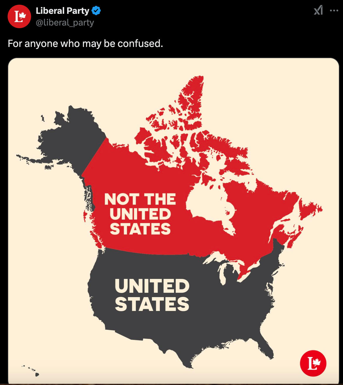 報道稱,在這篇帖文中,加拿大自由黨用紅色標記出加拿大領土輪廓,配文“非美國(領土)”,並用深灰色標記出美國的輪廓,配文“美國(領土)”。帖文文字還寫道,“給那些可能搞混的人”。