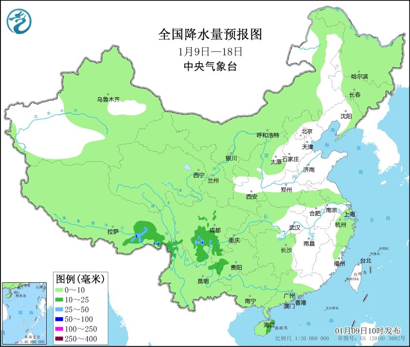 未來10天(1月9-18日),我國大部地區降水仍然偏少;西南地區東部、華南地區西部和南部及黑龍江和吉林兩省東部、西藏東部、湖南西部等地累計降水量有2~8毫米,西藏東南部、西南地區東部等地的局部地區有10~25毫米,我國其餘大部地區降水量不足2毫米或無降水。