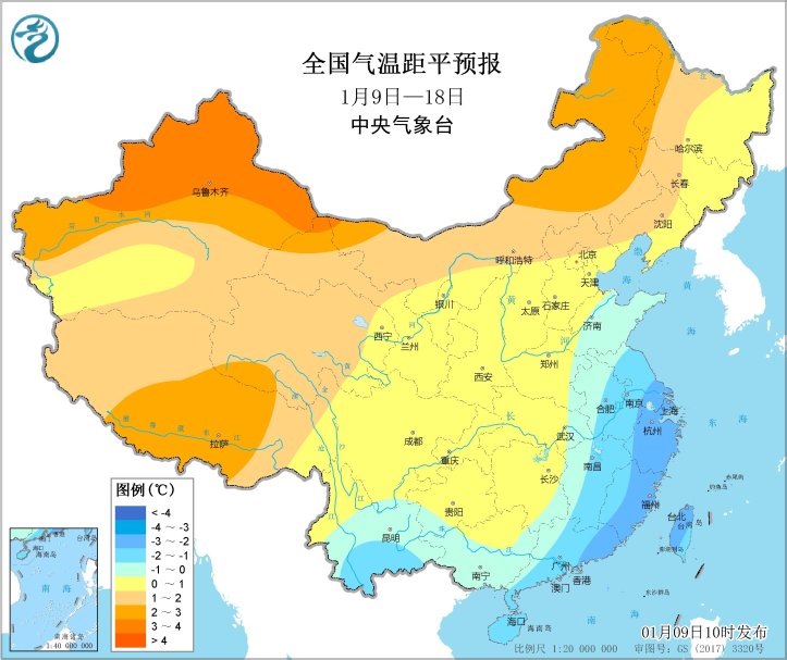 未來10天,影響我國的冷空氣勢力不強,但活動頻繁,主要冷空氣過程出現在1月9日、10-12日、14-16日;江淮、江南東部、華南地區東部和南部及雲南等地氣温偏低1~3℃。