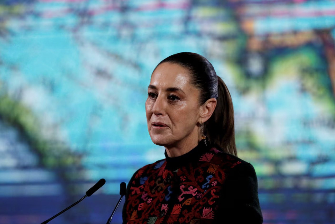 路透社稱,辛鮑姆當天在墨西哥前文化部長陪同下舉行新聞發佈會,其間辛鮑姆還以舊地圖為道具講授“歷史課”。