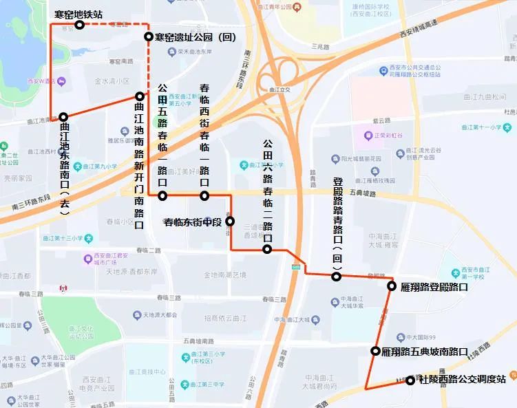 取消站點2個:登高路杜邑路口、曲江管委會。