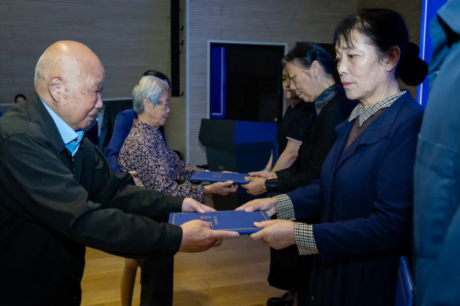 2024年重陽節,艾義英(左二)向第三批南京大屠殺歷史記憶傳承人頒發證書