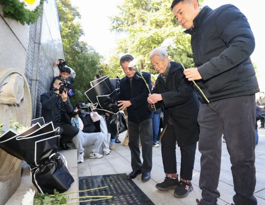2024年12月1日,艾義英在紀念館“哭牆”前祭奠親人