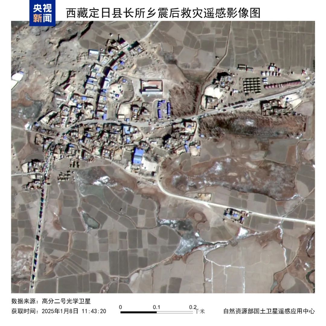 除了軍用裝備,遙感衞星等民用高科技裝備也被大量投入抗震救災行動,地震發生當天,為掌握受災區域即時情況,“吉林一號”衞星緊急調度過境西藏定日縣對災區進行觀測,並在成像後第一時間提供給相關單位,助力地震救災工作。