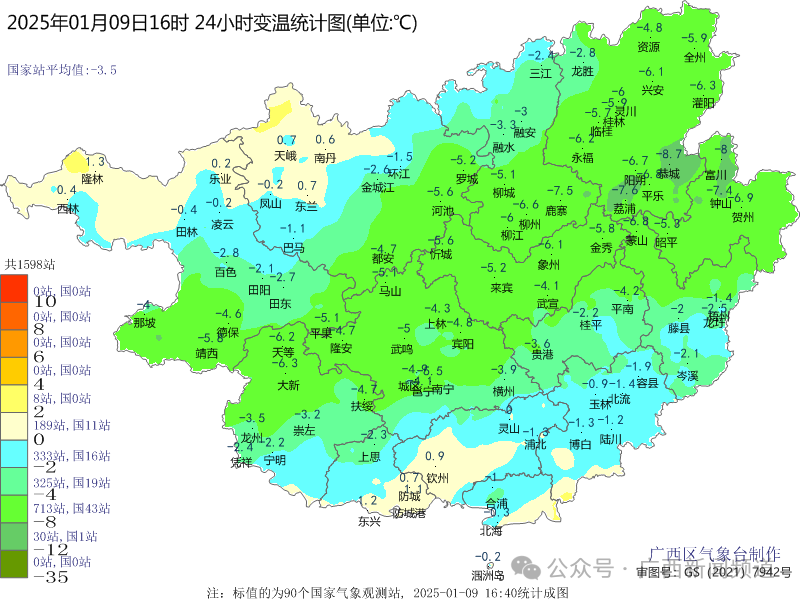 廣西氣象台首席預報員 劉國忠由於受這個冷空氣的影響, 目前的這個最低温度出現在這個桂林的資源的瓜裏這一帶,最低氣温已經出現了零下5.2℃了,就是預計受這個空氣繼續的影響,這個降雪天氣的話就是在今天晚上就結束了。由於這個冷空氣繼續南移之後,這個天氣轉晴好天氣之後,基本上降雨降雪就結束了。
