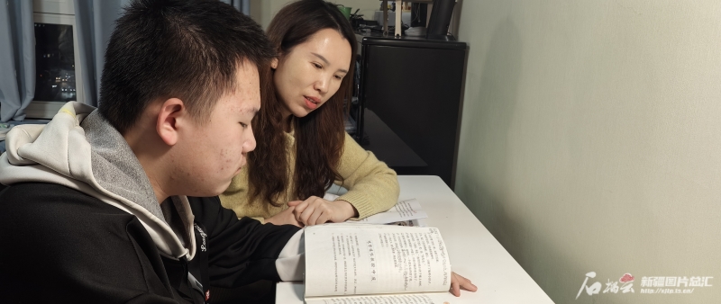 1月6日,晚飯後,李巧榮輔導兒子作業。銀河攝