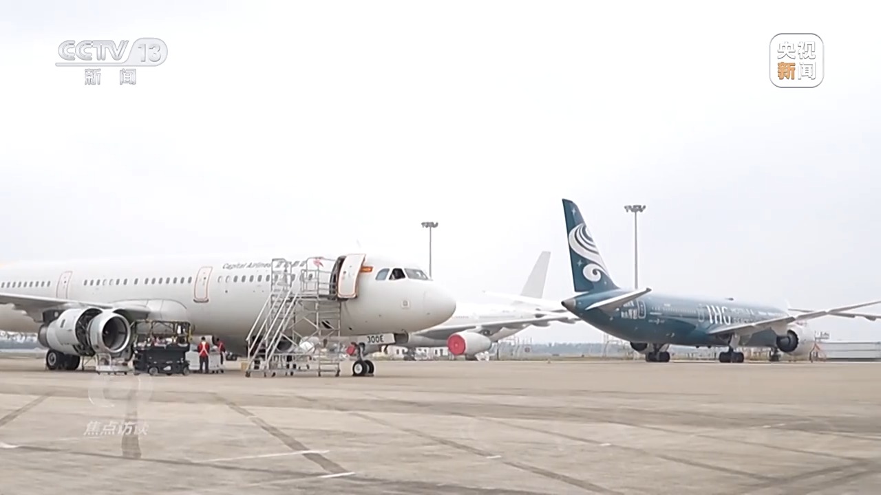 新年之際,位於海口的大新華飛機維修服務公司的機庫內,停放着來自世界各地不同航空公司的飛機,維修的工程師們正在緊張忙碌着。