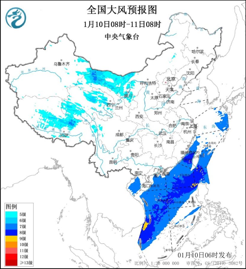 隨着冷空氣不斷南下入海,其對我國陸地的影響已經接近尾聲,不過仍然需要關注海上大風的影響。預計今明兩天,東海大部海域、台灣海峽、巴士海峽、台灣以東洋麪、南海大部海域、北部灣仍有7~8級、陣風9~10級的大風,其中,巴士海峽、南海東部和西南部部分海域風力可達9級、陣風10級。在上述海域航行、作業的船舶需注意安全。