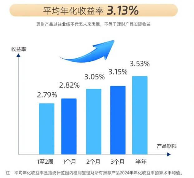 近日,網商銀行旗下理財平台穩利寶發佈2024年度報告顯示,2024年其平均年化收益率達到3.13%,高於定期存款和十年期國債,在當前低利率環境下,這種相對較高的收益成為了投資者資金的一個重要流向。