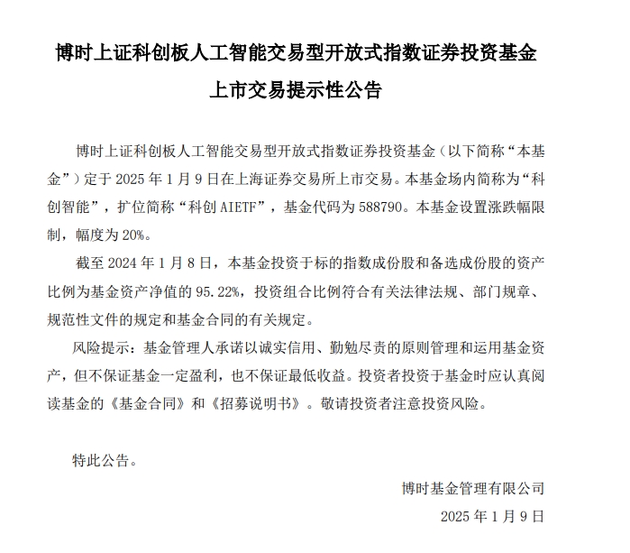 AI投資領域迎新產品!博時科創板人工智能ETF上市交易
