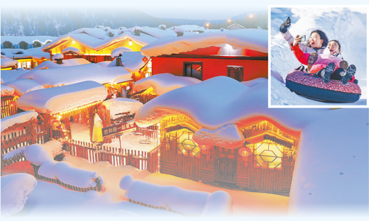 上圖:黑龍江省牡丹江市海林市的“中國雪鄉”景區夜色如畫。