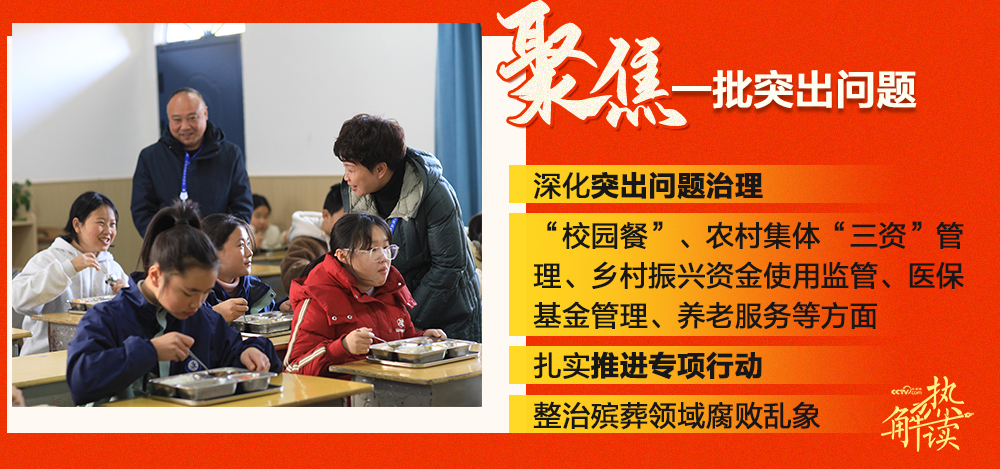 以“校園餐”問題為例。2024年,中央紀委國家監委督促有關部門首次摸清全國中小學食堂及供餐情況等底數,指導各級監察機關依法查處貪佔學生餐費、插手招標採購、收受回扣等問題3.8萬件,處分2.3萬人。在斬斷伸向“校園餐”的“黑手”的同時,補上了監管制度的漏洞。中央紀委國家監委會同教育部、市場監管總局、財政部等單位,制定“校園餐”管理監督指導意見,推動完善膳食經費管理等制度,確保每一筆資金來源與去向都在陽光下透明運作。