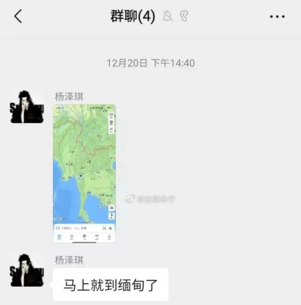 2024年12月20日凌晨,楊澤琪在北京大興機場乘坐VZ3719航班,於當地時間6時16分抵達曼谷素萬那普機場,落地後乘坐劇組接機車輛離開機場。北京時間14時59分,楊澤琪換乘第二輛劇組安排的車輛,定位顯示已經在泰緬邊境。