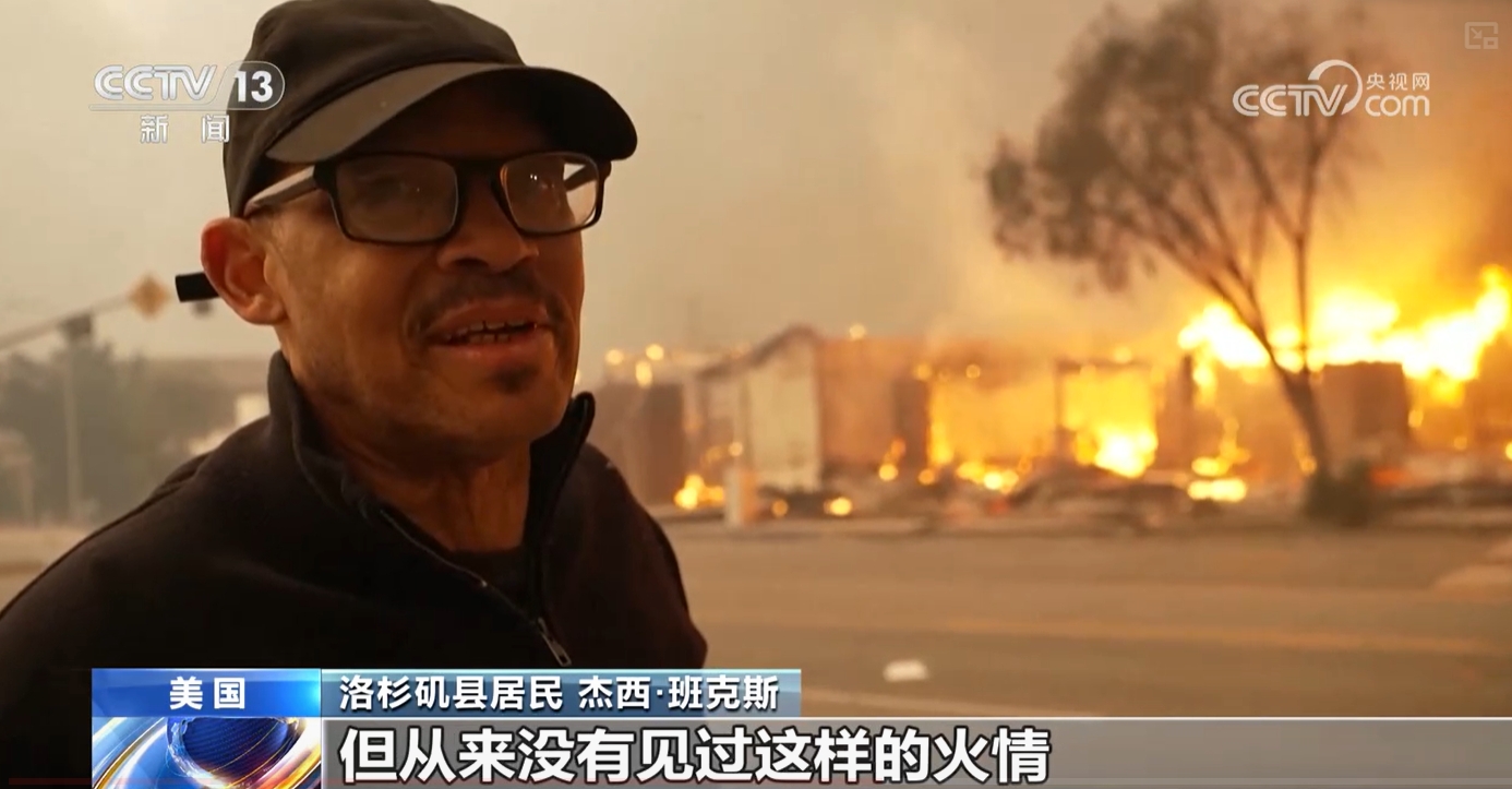 洛杉磯縣居民傑西·班克斯説:“我在這裏住了20多年,我們見過發生在山上的火災,但從來沒有見過這樣的火情。”