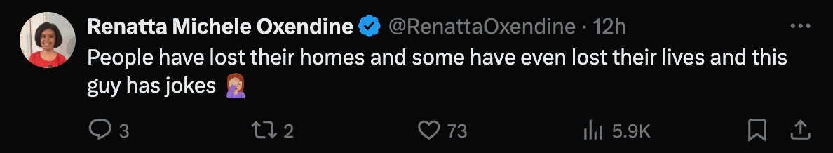 還有網友評論説,“人們失去家園,有人甚至失去了生命,這個傢伙還在開玩笑。”↓