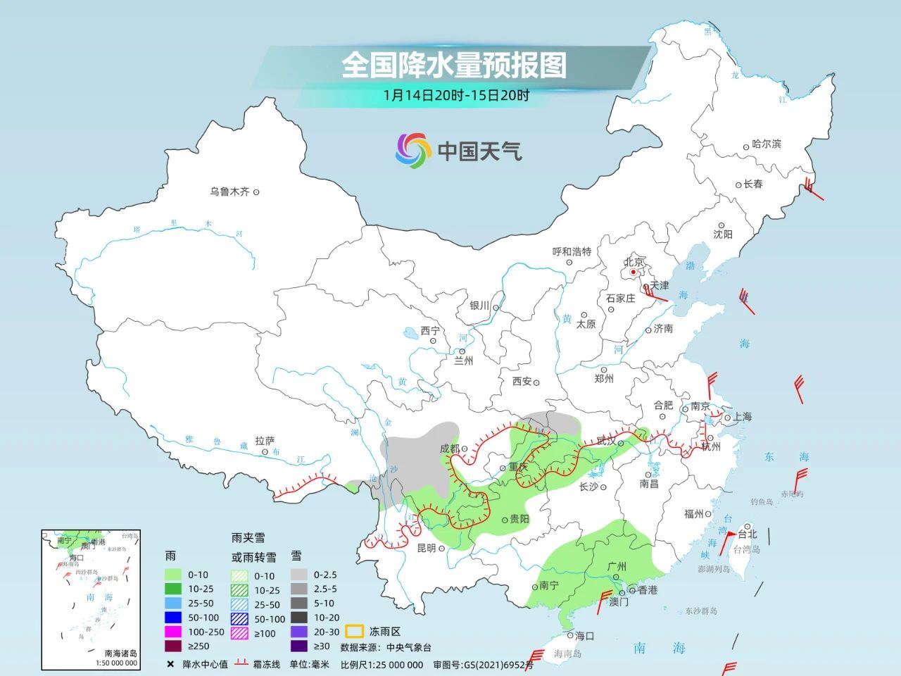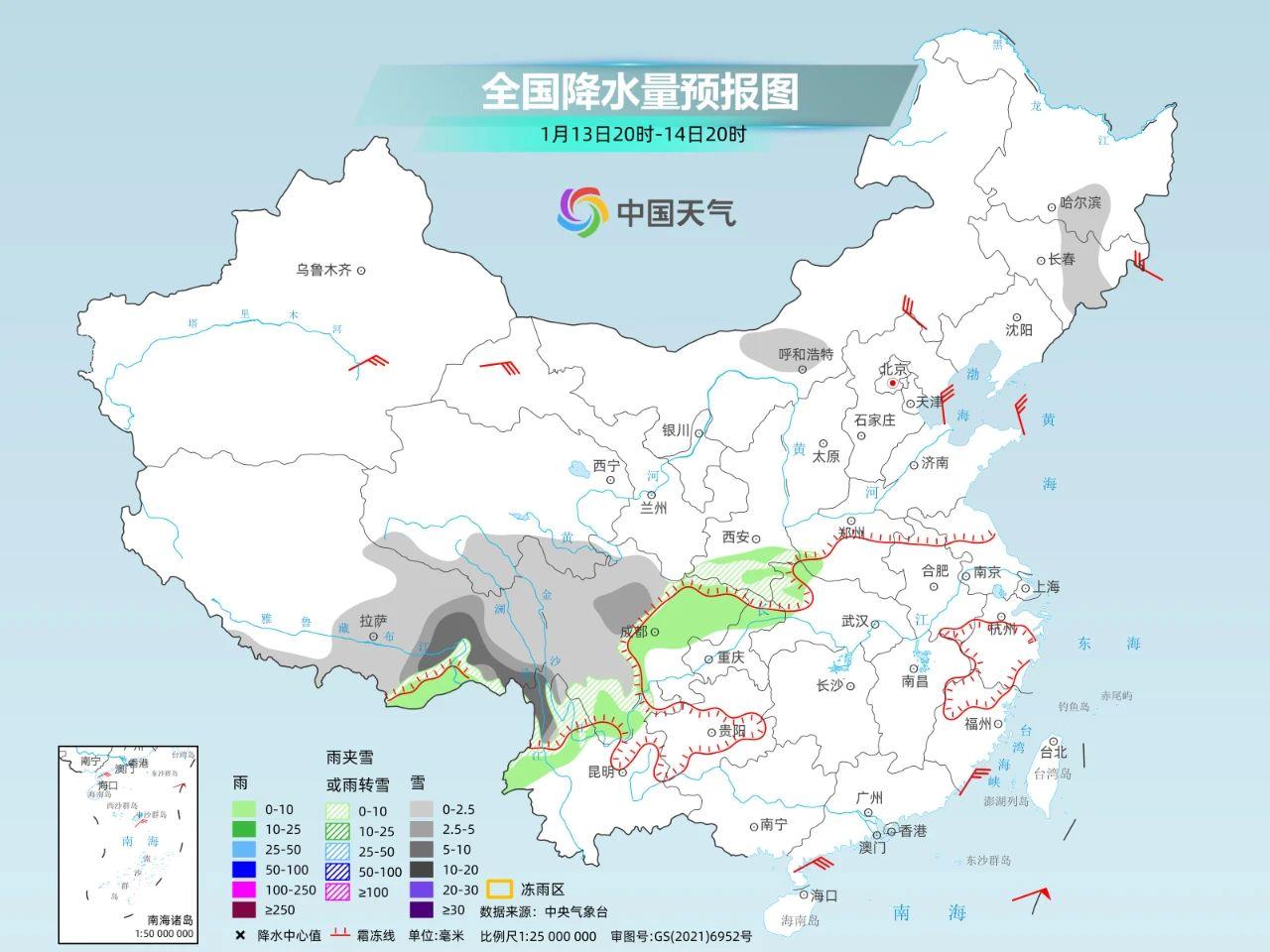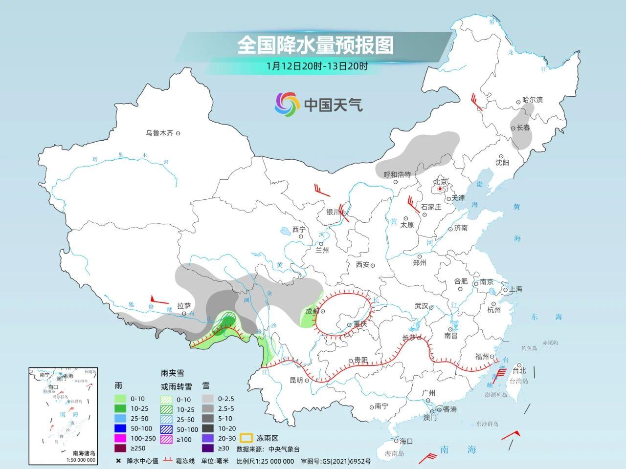 雨雪也不是完全消失。隨着新的南支槽東移,11~13日,*西藏中南部自西向東有小雪,南部中到大雪,局地暴雪,*西藏東部川藏沿線有小到中雪,累計降雪量2~7毫米,局地10毫米以上,積雪深度1~5釐米,高海拔地區局地5釐米以上。14日西藏降雪結束,四川、雲南、貴州等地還有些弱雨雪天氣。