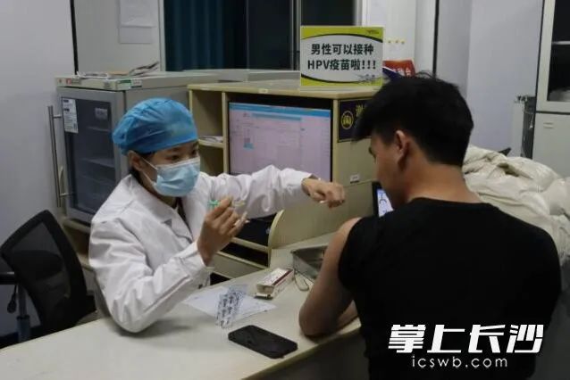 1月9日下午,在湖南省疾病預防控制中心門診部,20歲的大學生小趙完成了四價HPV疫苗的男性首針接種。