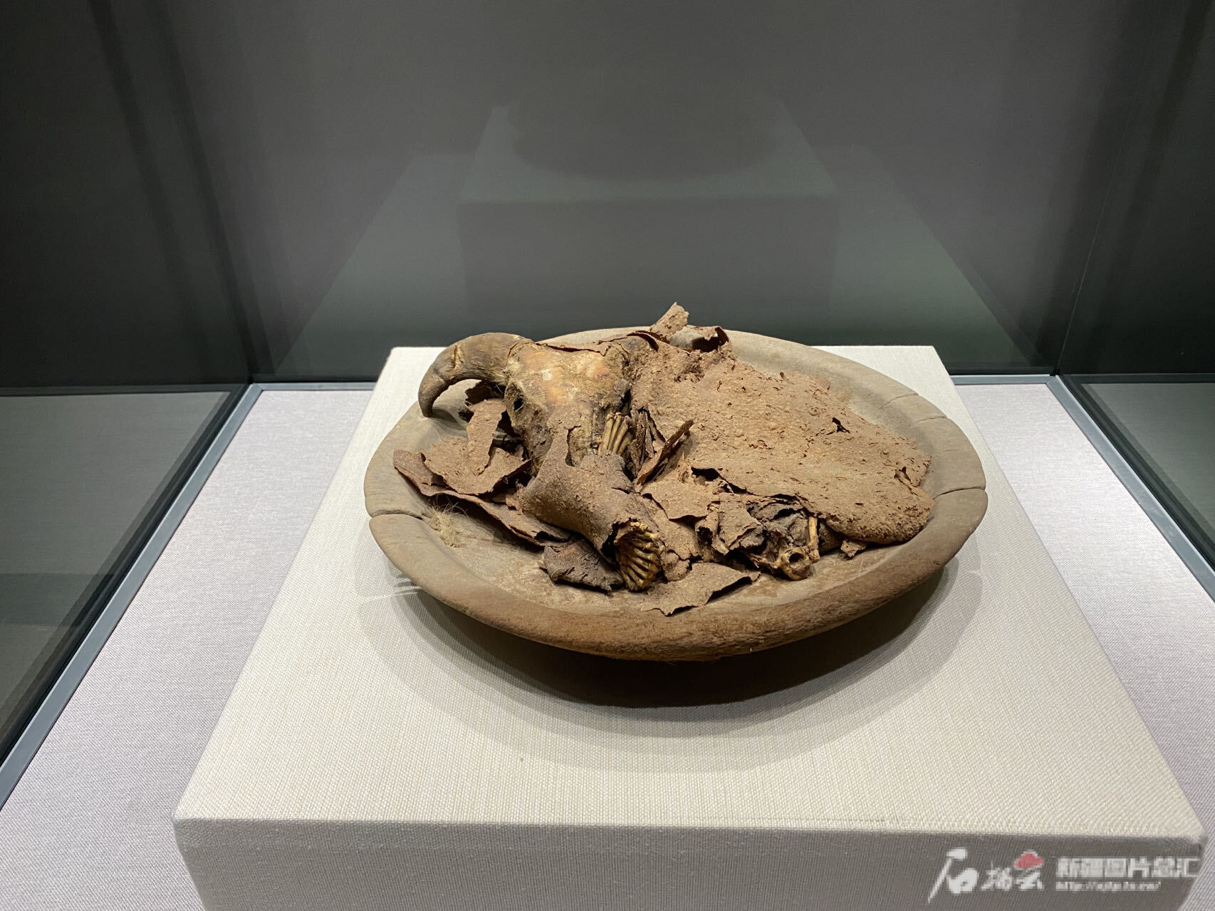 尉犁縣營盤墓地出土木盤及食物。天山網-新疆日報記者 趙梅攝