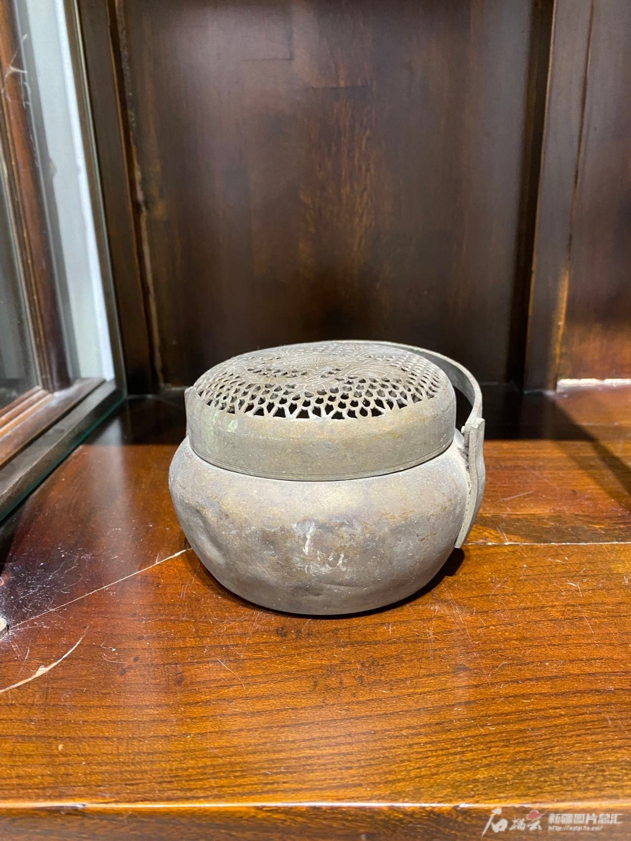 新疆文物總店展出民國時期鏤空銅手爐。天山網-新疆日報記者 趙梅攝
