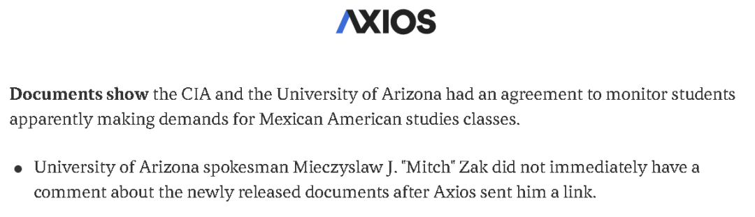 不僅如此,這批文件還顯示,美國的一些高校當時也在積極配合美國政府的這一監視行動。比如,美國亞利桑那大學當時就和中情局達成了協議,幫後者監視學生。