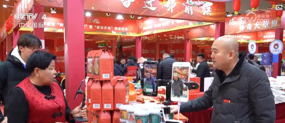 內蒙古鄂爾多斯年貨節吸引了不少市民前來趕大集,年貨節上各個攤位琳琅滿目,從當地本土的農畜產品,到充滿民俗特色的文化產品,應有盡有。除了種類齊全的各式年貨,另一大亮點便是當地駐村書記化身 “主播”,通過直播助力農產品銷售。
