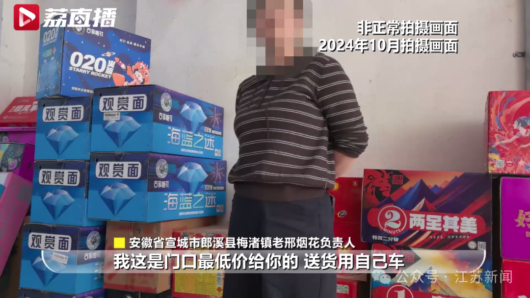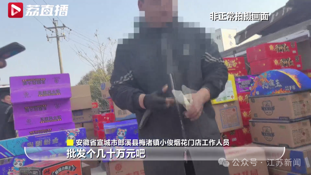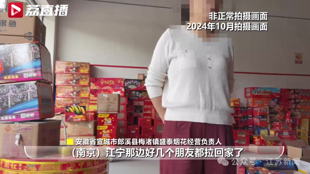 安徽省宣城市郎溪縣梅渚鎮盛泰煙花經營負責人:“南京江寧那邊好幾個朋友都拉回家了,他們都是在朋友圈賣的,聽説煙花要漲價都在拉。”
