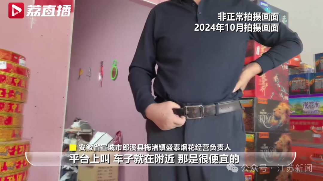 安徽省宣城市郎溪縣梅渚鎮盛泰煙花經營負責人:“平台上叫,車子就在附近,那是很便宜的。我們叫的話,我們的車子要空開回頭,專用車子到哪裏去找。”