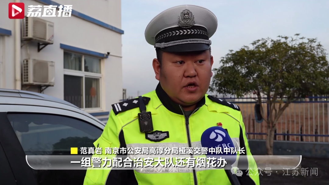 南京市公安局高淳分局椏溪交警中隊中隊長範真巖:“我們分了兩組警力,一組配合治安大隊還有煙花辦進行臨時點位查處,另外中隊專門有一組警力,負責在街道附近進行巡邏查處。”