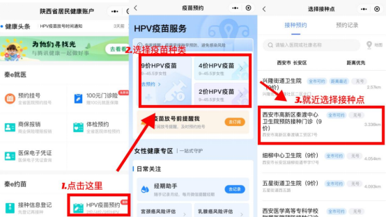 目前陝西多家接種門診,已陸續向男性開放HPV疫苗接種。蓮湖區西桃園社區衞生服務站、西安市未央區未央宮社區衞生服務中心、碑林區建東街3號成人接種門診、榆林市定邊縣定邊街辦衞生服務中心、漢中市各區縣等近期已發佈具體接種信息。