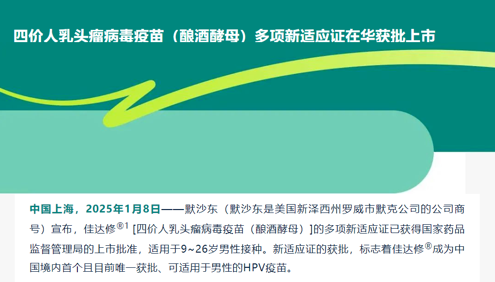 4價HPV疫苗本次獲批的新適應證可適用於男性預防因HPV16、HPV18引起的肛門癌,HPV6和HPV11引起的生殖器疣(尖鋭濕疣)等。