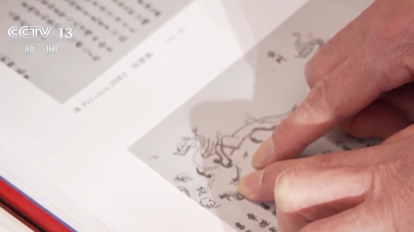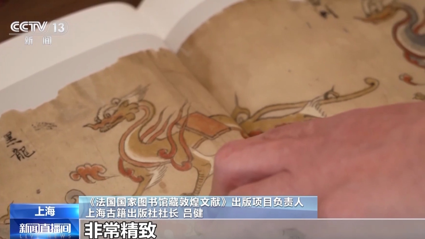 *《法國國家圖書館藏敦煌文獻》出版項目負責人、上海古籍出版社社長 呂健:*黑龍的腿部的這個地方,在黑白版裏面其實是虛化了的,是有缺陷的,而我們看彩版同樣的這個地方,非常精緻。由此,瑞應圖所反映從魏晉南北朝到隋唐時期,龍的形象到底是什麼樣子的,這就是文獻的價值所在。