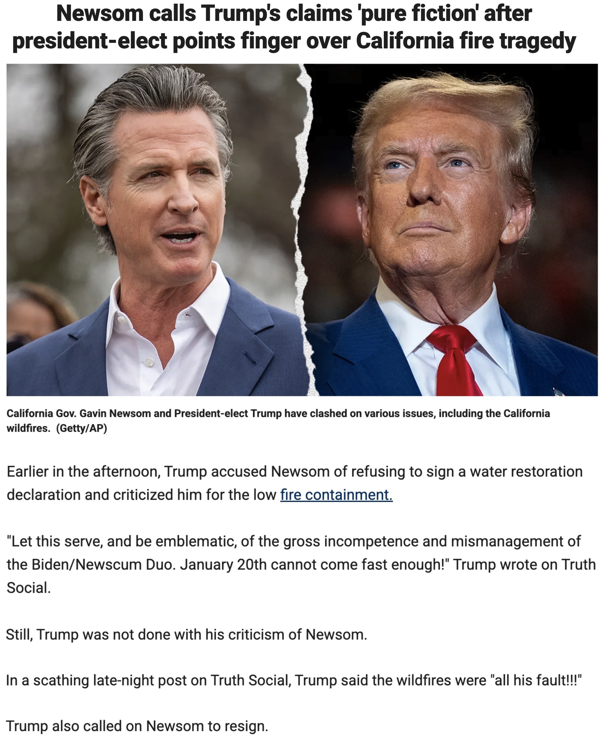 △福克斯新聞網報道:特朗普稱加州山火是紐森和拜登嚴重無能和管理不善的象徵,還稱山火全是紐森的錯,並呼籲紐森辭職。