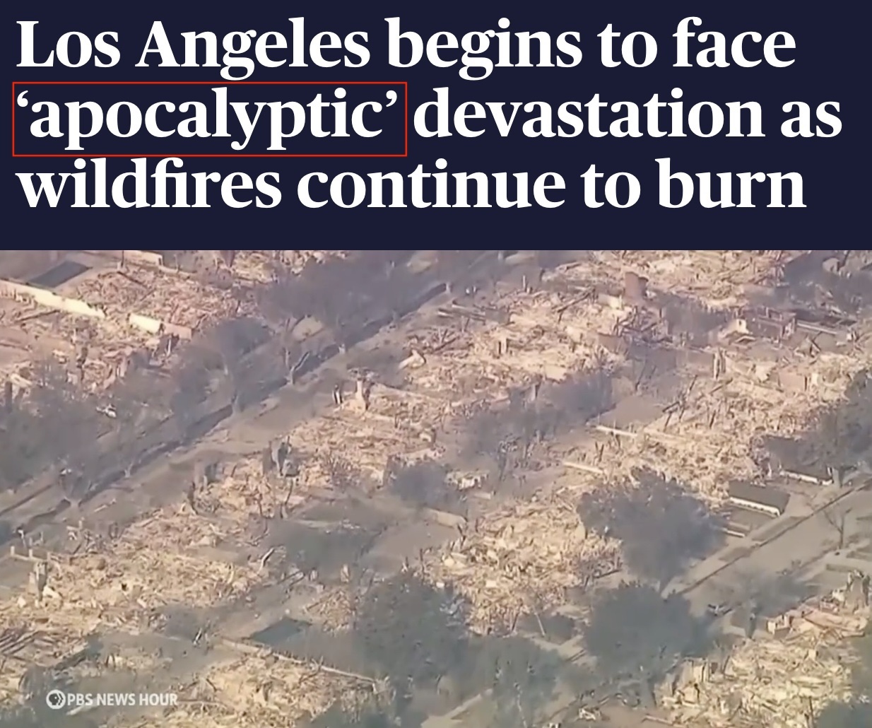 “近幾年由於氣候變暖引發天氣乾燥和相應的山火在加州頻發。但在應對氣候變化方面,美國聯邦政府左搖右擺,導致聯邦層面出台的應對氣候變化的政策難以讓人滿意。地方政府層面同樣出現了嚴重的問題,地方政府顯然沒有把民眾的生命和財產當執政的重心。加州山火的悲劇性局面,是天災人禍共同導致的結果。”(總枱環球資訊廣播)