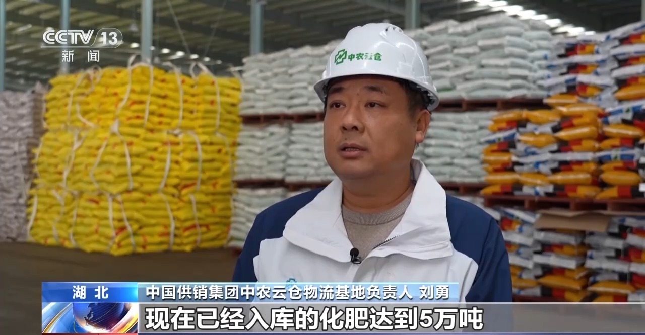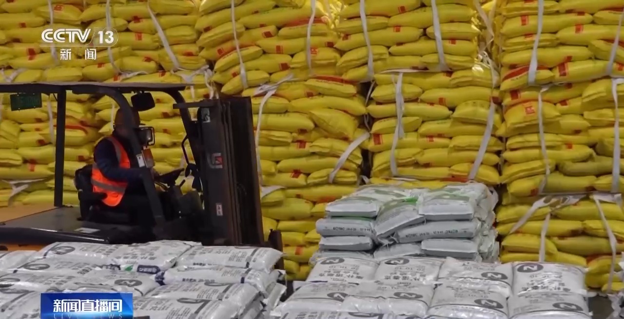 *中國供銷集團中農雲倉物流基地負責人 劉勇:*現在已經入庫的化肥達到5萬噸。接下來還會陸續到貨,儲備量可以充分保障2025年春耕期間,周邊工廠和農户的用肥需求。