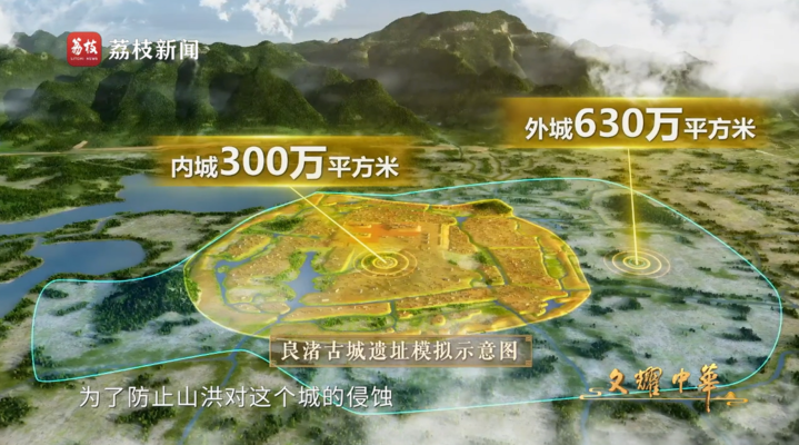 2006年、2007年,在浙江餘杭的良渚遺址發現了大型的城址,南北1700米,東西1500米,300萬平方米。相當於四個北京故宮。外城630萬平方米,相當於八個故宮。為了防止山洪對這個城的侵蝕,在修城之前修建大型的水利工程,總長達數公里,總用工量大約3600萬個勞動日。動員1萬人,連續工作需要10年。
