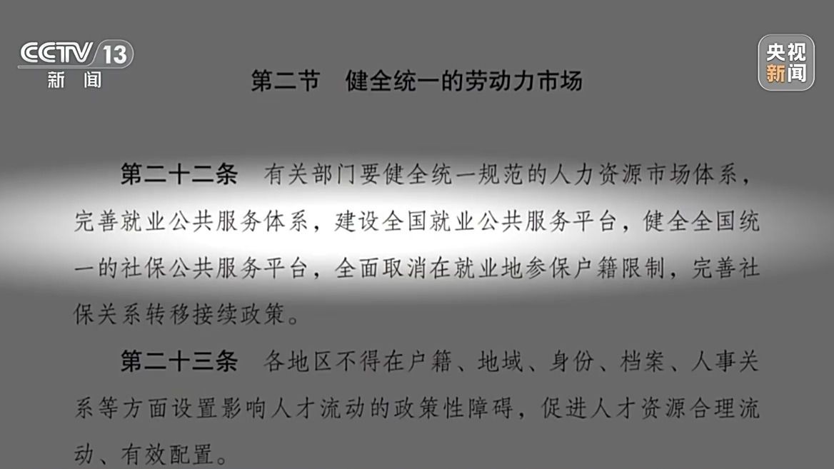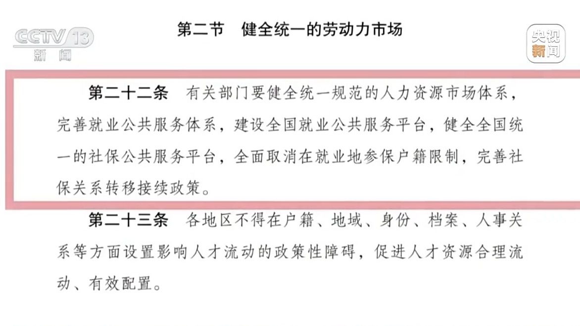 不久前,國家發展改革委印發《全國統一大市場建設指引(試行)》的通知,明確全面取消在就業地參保户籍限制。
