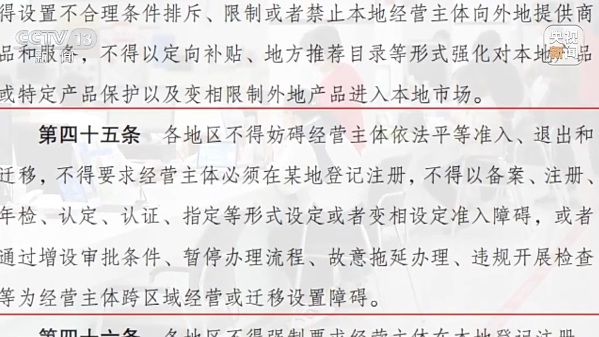 《全國統一大市場建設指引》強調,不得以通過增設審批條件、暫停辦理流程、故意拖延辦理、違規開展檢查等為經營主體跨區域經營或遷移設置障礙,並將其作為加力破除地方保護和市場分割的重要舉措。
