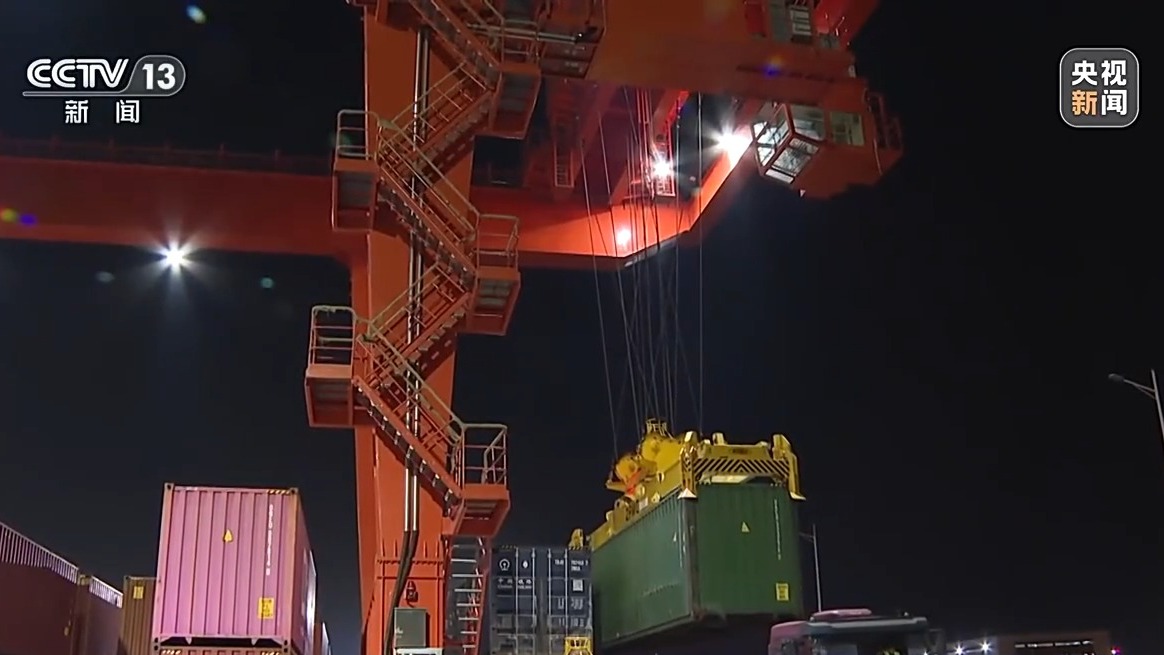 本週五,一列海鐵聯運班列停靠在合肥派河鐵路貨運站。龍門吊起起落落,將集裝箱穩穩放進列車,這些集裝箱將被火車送達寧波舟山港。在合肥的這個貨運站,記者看到了寧波海關工作人員的身影。