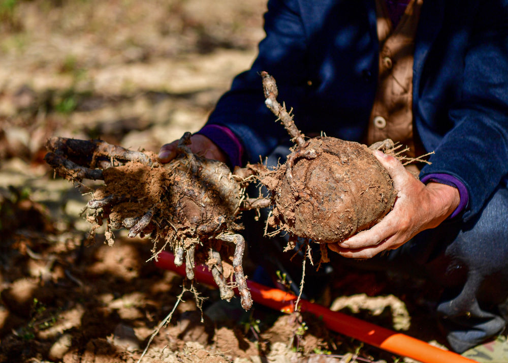 入冬以後,攀枝花市米易縣普威鎮西番村家家户户先是在樹上摘核桃,然後在樹下挖續斷、刨圓根蘿蔔……“以前只種核桃樹,也只收核桃。現在核桃照樣一畝產3000多斤,樹下的蘿蔔一畝又能收3000多斤,試種了續斷,乾貨畝產1000斤,經濟效益特別好。”西番村村民都志發對記者説。