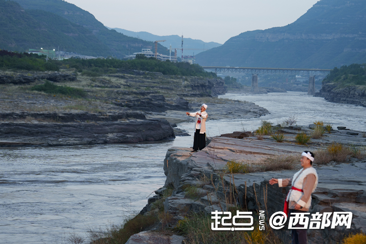 石佔明、王向榮在黃河岸邊共唱民歌。