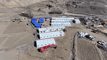 據瞭解,每間板房有18平方米,可容納4到5人,板房設有摺疊牀、桌子、爐子等設施。此外,板房自帶防盜門和防盜塑鋼窗,兩窗相對、通風明亮,密封保温;內置多種型號的插座和照明燈,接通外部電力後即可入住。安置點內還設計了住宿洗漱、就醫學習等功能區。讓人印象深刻的是,首批活動板房整體結構設計多采用摺疊式,最快時8分鐘就能搭建好一間活動板房。