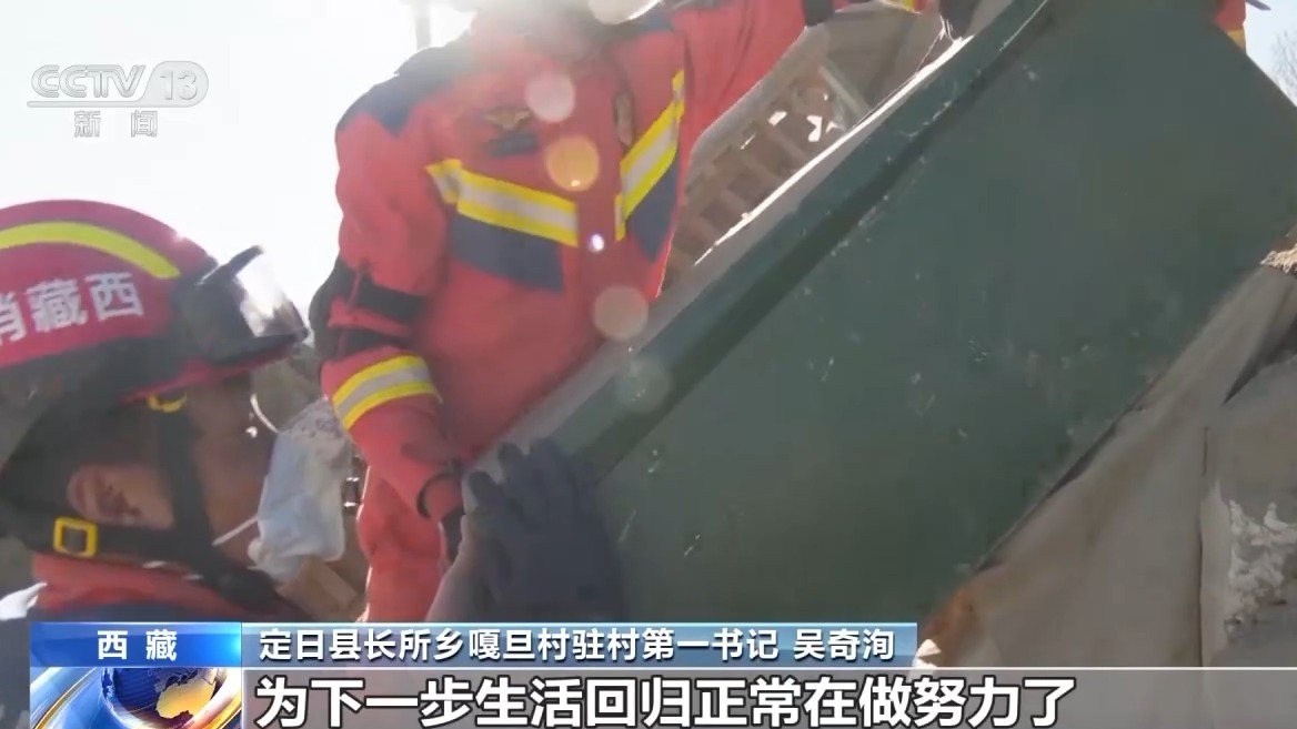 *定日縣長所鄉嘎旦村駐村第一書記 吳奇**洵:*為下一步生活迴歸正常在做努力了,每一個人都平靜下來了。像我們駐村幹部,大部分昨天都睡了一個相對安穩的覺,餘震也沒有那麼頻繁。