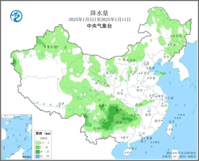 全國大部農區降水偏少或無降水,僅西南地區東部及江南西部有5至25毫米降水,新疆北部和東北地區中北部等地出現小到中雪、大部積雪深度有5至50釐米。