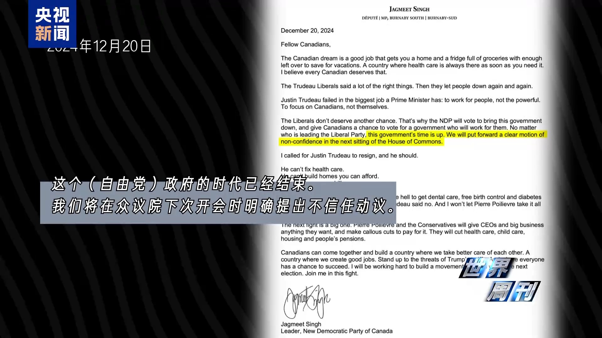 *2024年12月20日,辛格再次發佈聲明:*自由黨政府的時代已經結束。我們將在眾議院下次開會時明確提出不信任動議。