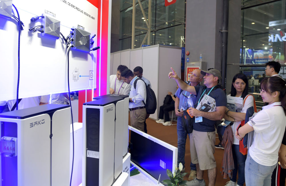 2024年4月16日,採購商在第135屆廣交會上了解太陽能發電設備。(新華社記者 盧漢欣 攝)