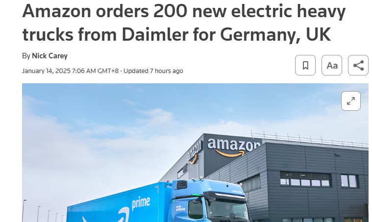 該訂單是亞馬遜承諾到2040年實現其整個運營過程中淨零碳排放目標的一部分。戴姆勒方面也表示,這是梅賽德斯-奔馳卡車品牌迄今為止收到的最大的電動卡車訂單。