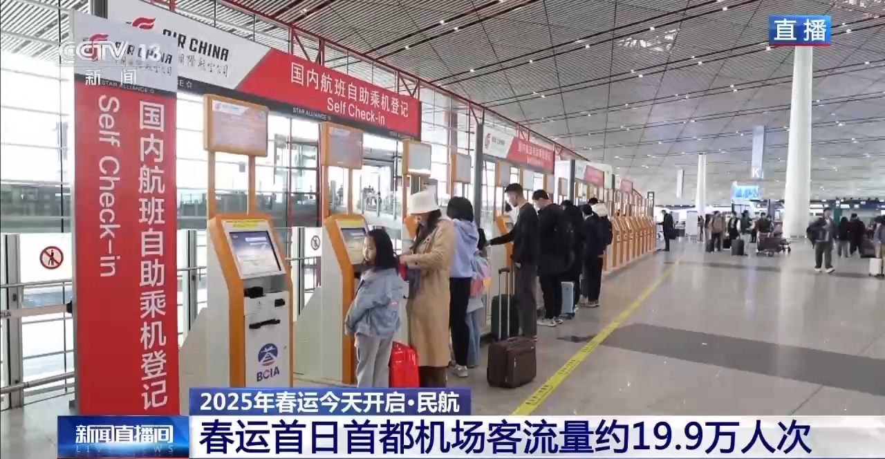 *總枱央視記者 曹丹:*根據首都機場的測算,今天的客流量預計達到19.9萬人次。今天出行的旅客中,明顯老人和孩子的佔比相對比較高。目前學校基本已經放寒假了,錯峯出行的老人孩子會比較多。